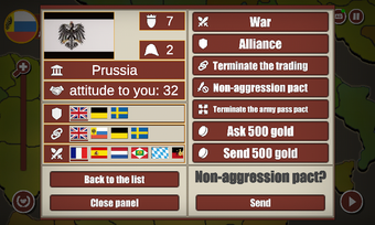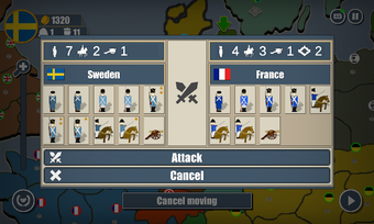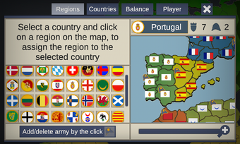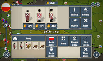 En este juego, la jugabilidad es por turnos, y tendrás que mover tus ejércitos en el mapa y conquistar regiones enemigas. Hay varios países, y al comienzo del juego, tendrás que elegir uno o más países.